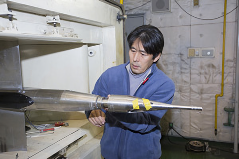 平木 | 扱っているテーマとしては航空宇宙、海洋、ファインバブルの3つは大きく異なります。海洋については関門海峡で発生する潮流を使って発電を行う、いわゆる自然再生エネルギーの研究です。一方ファインバブルは、今、さまざまな分野で注目を集めている研究ですが、私は生鮮魚介類の品質保持をテーマに研究しています。簡単に言うと、海水の中に窒素を含有した微細なナノバブルを連続的に発生させることで水中の酸素を追い出して、酸化や細菌の増殖を抑制する。そうした水の中で鮮魚類を保存することでより長期間に鮮度を保ち、食糧の無駄な廃棄を減らそうというものです。 |