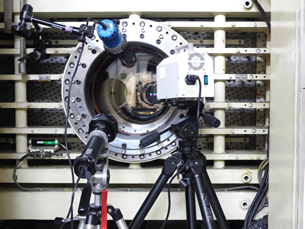 クライネ | 今、この設備では60cm四方の範囲が測定できます。それはかなり広範囲ではあるのですが、希望としては人ひとりがすっぽりと収まるような、2mから3mくらいの範囲を計測できる装置で、大きなスケールで飛翔物を測ってみたいですね。これはJAXAへの要望としておきましょうか(笑)。 |
