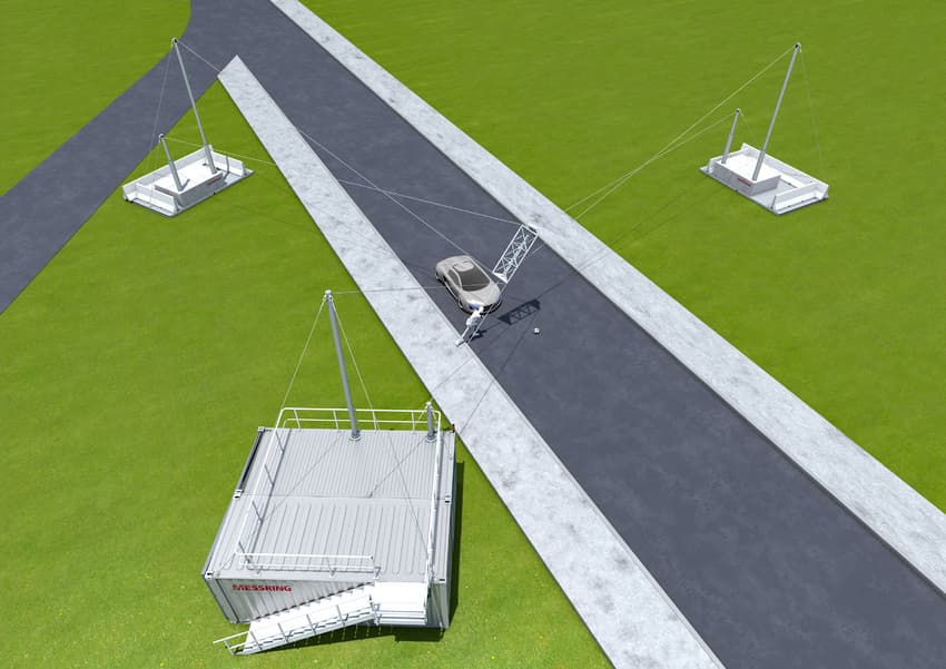 AEB試験において歩行者ダミーの動きを自在に動かしたいニーズに対応した装置です。方向の変更、速度の変更、歩道から通りまでの標高の変更など、さまざまなAEBテストシナリオが設定できます。MESSRING社が開発した歩行者ターゲットASTEROと組み合わせて、身体の傾きや急な加減速を再現することができます。自転車のターゲットを移動させることもでき、自転車をカーブさせるときの傾きを再現させることも可能です。