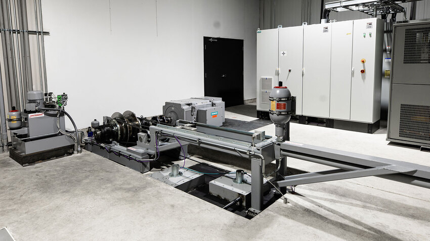 約5×6mのエリアに設置でき、小型ながらEV車のような重量の重い車両でもけん引することが可能です。車両位置をレーザー測距し、装置に常にフィードバックすることで高精度なけん引を行うことができます。前後どちらにも同速で走行できるように設計されておりさまざまな試験に対応します。