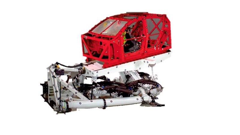 スレッド試験で実車衝突時に発生する車両の回転を再現する装置です。ロール・ピッチ・ヨーの3軸回転を減速と同時に行うことで実車衝突の再現を非破壊で行うことができます。