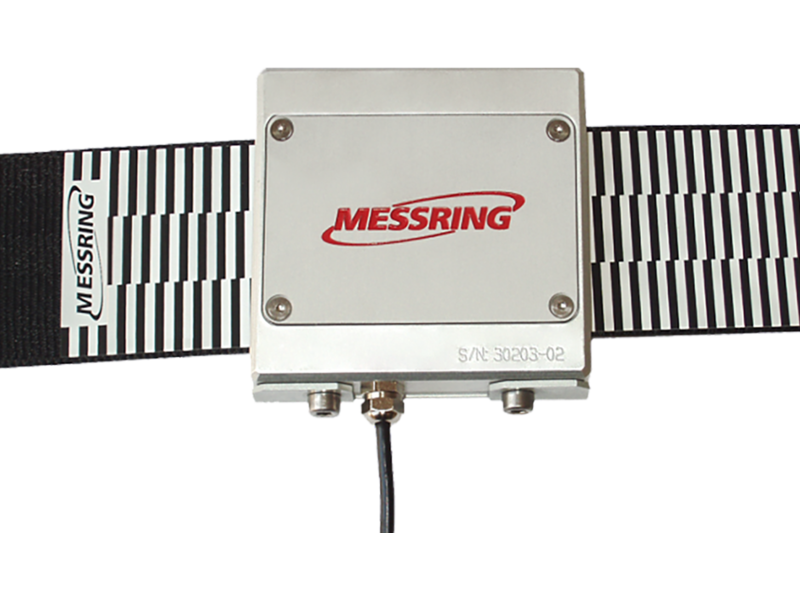 シートベルトの変位を計測するための装置です。シートベルトに縞模様のテープを貼り、縞模様を読み取ることで変位を計測します。±2,048mmの範囲計測を行うことができ、1mmの精度があります。計測できる最大速度は50m/sです。