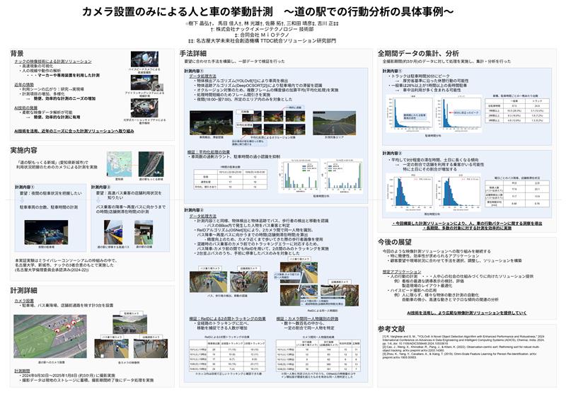 2024年度に「道の駅 もっくる新城」にて実施した、固定カメラの映像を用いて人と車の挙動をAIで解析した際の精度検証に関する発表