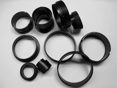 金属製の部品はフォーカスフォロワーとカムシャフト。黒色のリング状の物はレンズ分解工具。いずれもサイズを正確に計測して図面を起こし、名取自身が手作業で仕上げた。