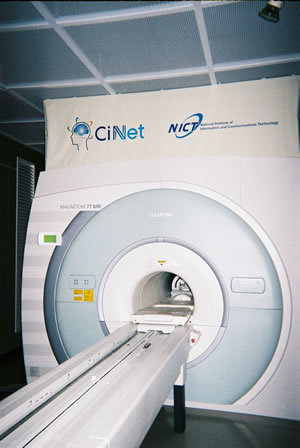 | 糸井 | 私が初めてMRIに関わった98年当時ですと測定の最小単位は3ミリ角のボクセル*13でした。ところが今では磁場の強さを大きくすることでS/N*14を高め、より小さなボクセルの単位で測ることができるようになってきた。CiNetには7テスラ*15の強力な磁場を持つMRIがありますが、それですと1ミリ角単位のボクセルで計測することができる。つまり3ミリ角に対して体積で約27倍、表面積で約9倍の細かさで測定することが可能になっています。 |