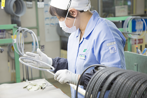 | 大谷 | 開発から製造までの過程で、徹底した品質管理を行っていることも新潟生産本部の特徴かもしれません。先ほど工場を見て頂いて分かるように、各工程には必ず検査工程があり、定められた資格を有する人が検査者としてチェックをしています。この何重もの検査工程は、品質に対する私たちの大きなこだわりでもあります。実際バドミントンラケットを国内製造しているのは私たちヨネックスだけですから。MADE IN JAPANとしての強いプライドは持っていますね。 |
